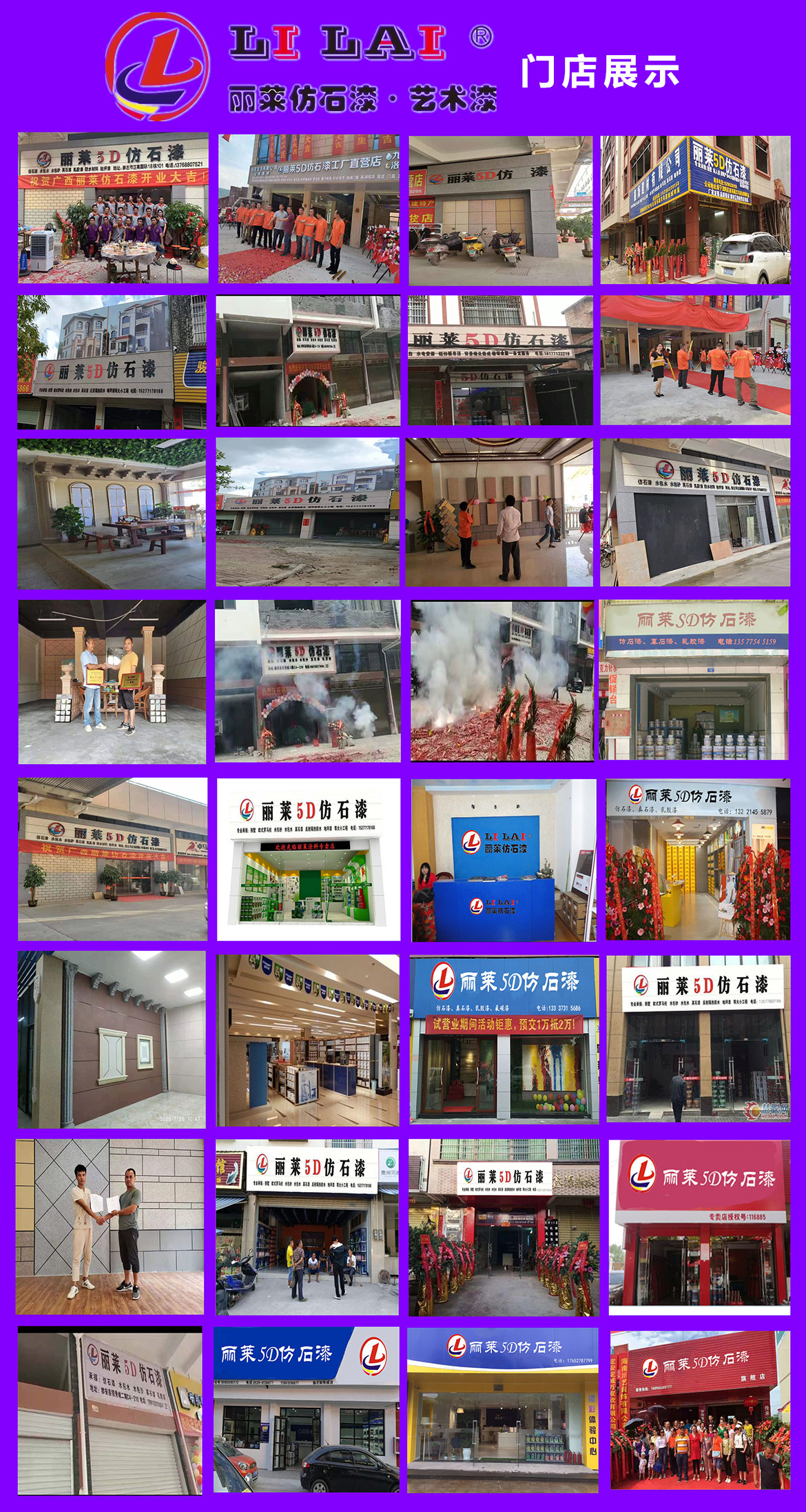 公司旗下核心品牌“麗萊”“杰涂士“,主要產(chǎn)品“仿石漆”、“藝術(shù)漆”、“真石漆”、“水生漆”及配套輔材全系產(chǎn)品均為綠色環(huán)保節(jié)能產(chǎn)品。憑借完善的研發(fā)、制造和服務(wù)體系,能為客戶定制和提供近千種仿石效果和藝術(shù)涂裝效果方案,為了能夠滿足不同層次、不同需求的家裝及工裝需求,公司打造了1000多平方米的大型展示館及綜合體辦公大樓,以供客戶的各種風(fēng)格需求。截至2018年累計(jì)工程案例數(shù)千個(gè),公司旗下麗萊仿石漆品牌已逐步替代瓷磚和干掛石材,成為廣大外墻涂裝用戶的信賴產(chǎn)品。